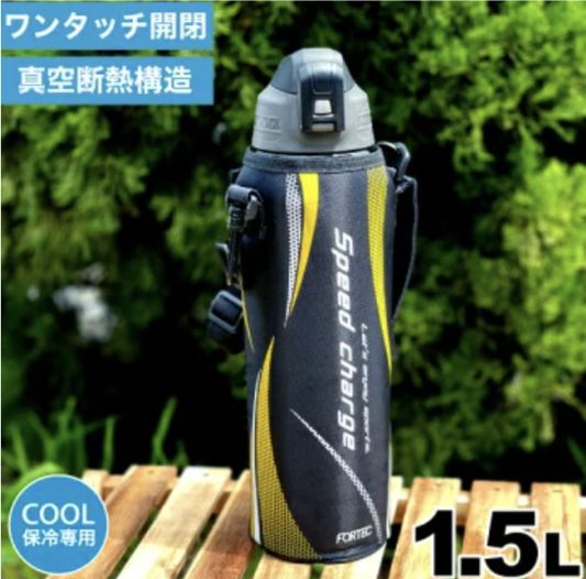 和フレイズ 水筒 直飲み ステンレスボトル1.5Lブラック新空有断熱ボトル保冷専用子供小学生 カバー付きRH-1560