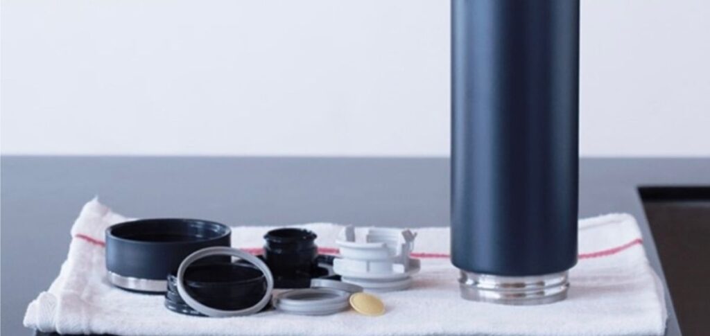 水筒を逆さまにしても漏れないようにする為、パッキン(ゴム)が組み込まれていたり、温かい飲み物を入れた時に、蒸気逃し通気口を確保する複雑構造にしている水筒もあります。