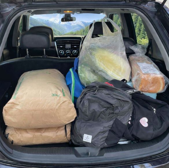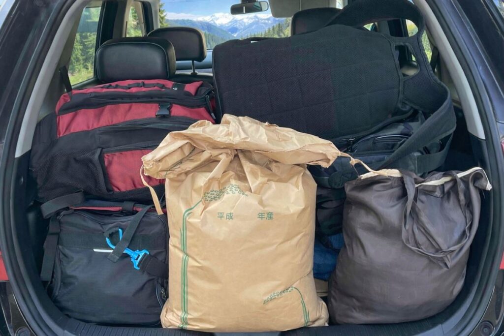 米袋以外がルーフボックスに収まってトランクが丸々使用可能です。