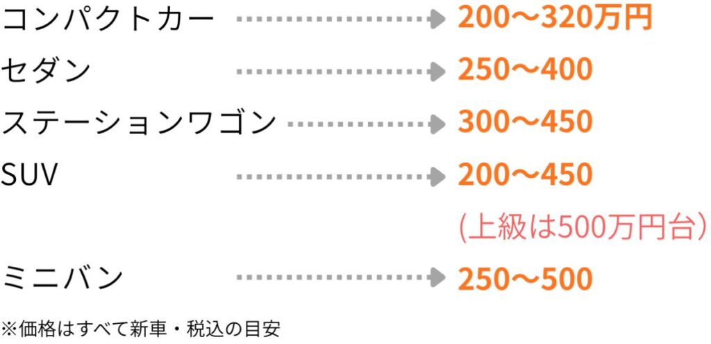 ちなみに各ボディタイプの新車相場を調べてみました。